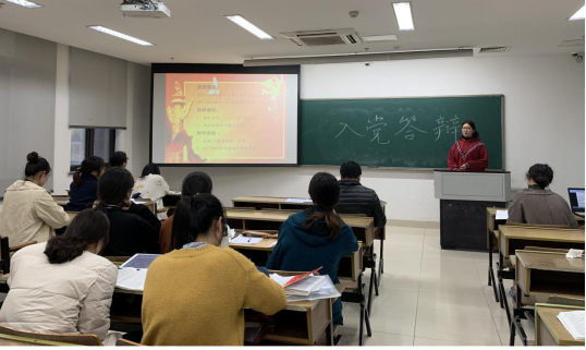 11月21日下午13:30,在恕园23-205、206,色花堂 开展了本科生和研究生入党答辩会。支部书记傅培恩、孔祥亮、余慧菊、陈晓玲四位老师和学生支委担任答辩评委。