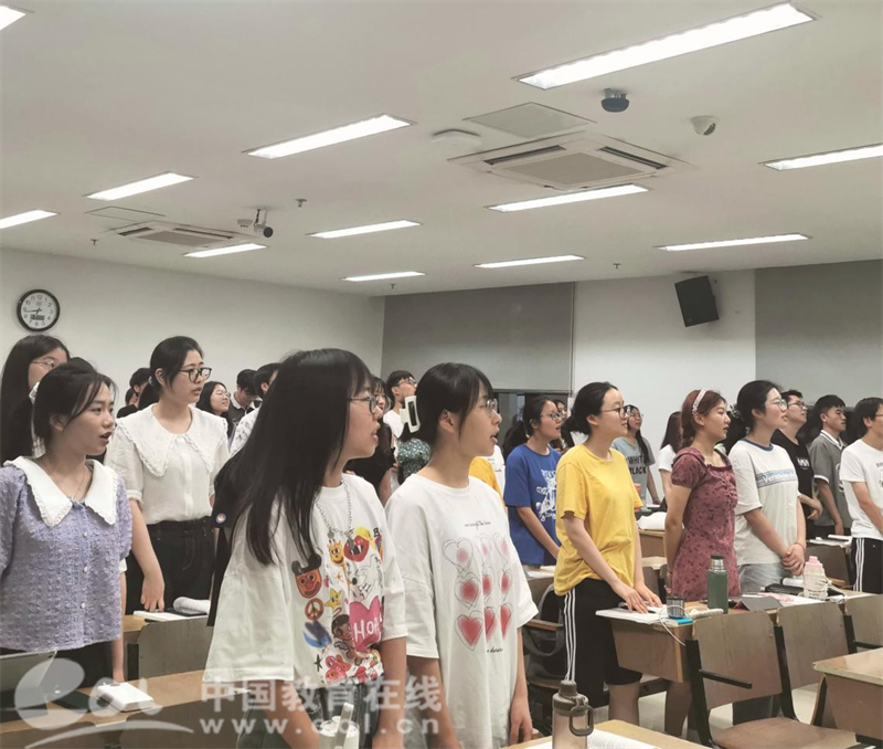 中国教育在线浙江站讯 (记者 陈显婷 通讯员 张舒翼 陈鑫)“起来,饥寒交迫的奴隶!起来,全世界受苦的人!满腔的热血已经沸腾,要为真理而斗争……”这首国际无产阶级的战歌《国际歌》,是国际社会主义运动中最著名的一首歌。电影《建党伟业》最后一幕中,中共一大所有代表在嘉兴红船上共唱了《国际歌》。5月31日晚,这首充满斗志的歌在杭州师范大学的一堂“世界近代史”课上再次响起。