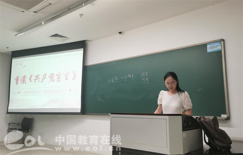 该校色花堂 历史系2019级的朱辉煌同学对搜集不同译本的《共产党宣言》进行比较的要求记忆深刻。她说:“和单纯了解《共产党宣言》的内容相比较,自己去搜集各种版本的《共产党宣言》,更能感受到马克思主义在中国的发展历程。在搜集的过程中,我切切实实地感觉到了共产主义对中国的影响。”傅静一创同学也说:“上完周老师的课后我有了很深的体会。周老师把党史融入专业课的做法既加深了我们对世界近代史的理解,也提升了我们对中国共产党的认识,干货满满。”