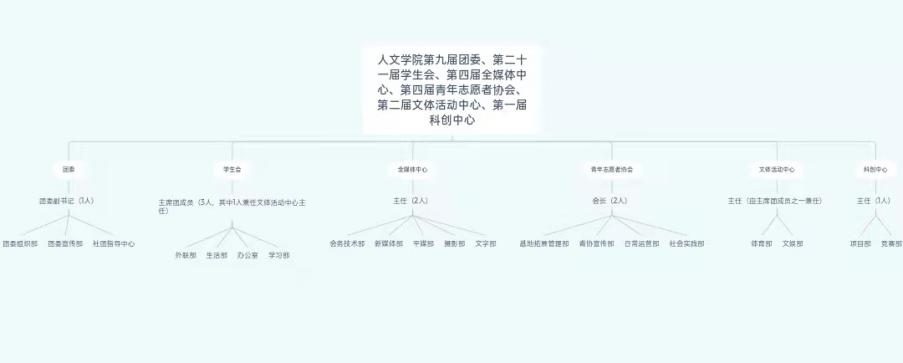 文体活动中心主任(由主席团成员之一担任) | 1人 | 2019级学生,主要职责:全面统筹运动会、体育节、马拉松、体测、荧光夜跑等全校性体育类活动以及色花堂 迎新杯师生羽毛球赛、师生篮球对抗赛等院级体育类特色活动;负责院内体育事项通知管理,将学院和学校要求传达给同学,也将同学的意见反馈给学院和学校;全面统筹学院新生合唱比赛训练、开学典礼暨迎新晚会、十佳歌手比赛、学院毕业典礼暨毕业晚会;负责学院相关文娱活动申报及培训。 | |