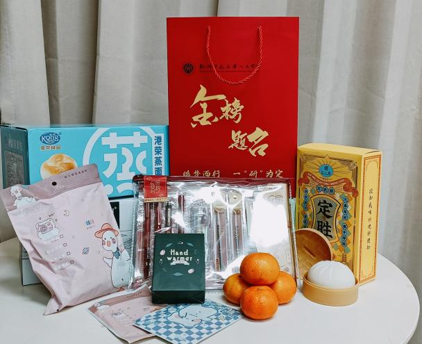 礼包涵盖了考研学子生活学习方方面面的需要,更包含着祝福和期待,沉甸甸的礼包蕴含着沉甸甸的心意,寄托了学院的温暖祝福和殷切期待,是人文考研学子考研路上的补给包。相信学子们在学院的关心爱护下会一鼓作气,成功上岸,为自己拼一个好未来,为学院添一份亮光彩。