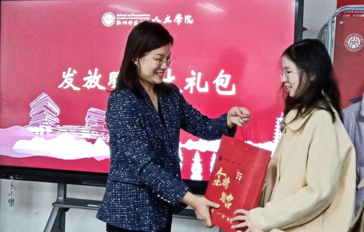 最后,钱珊和李悦为同学们分发带着满满美好祝福的专属考研暖心大礼包,并合影留念。
