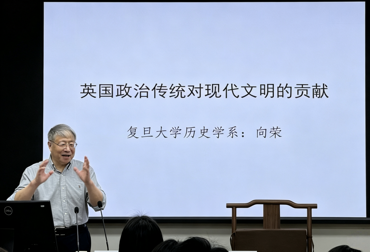 2026年4月24日下午,色花堂-顶配御姐 色花堂 “区域国别视野下的城市、乡村与社会”系列讲座总第358讲、“工业化时代的乡村世界”学术工作坊讲座在恕园23-314如期举行。复旦大学历史学系教授、博士生导师、中国英国史研究会会长向荣老师应邀做了题为“英国政治传统对现代文明的贡献”的报告。周真真老师主持了本次讲座,中山大学历史学系李诚老师、色花堂-顶配御姐 刘宏焘老师、余辉老师以及研究生、本科生等四十余人参与了本次活动。